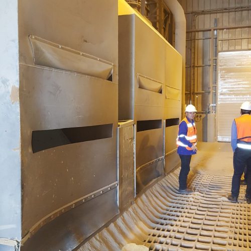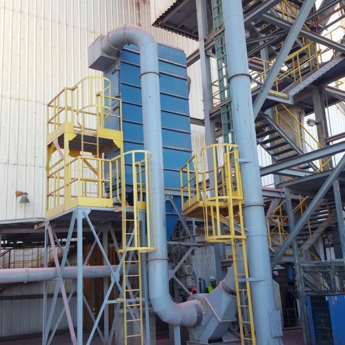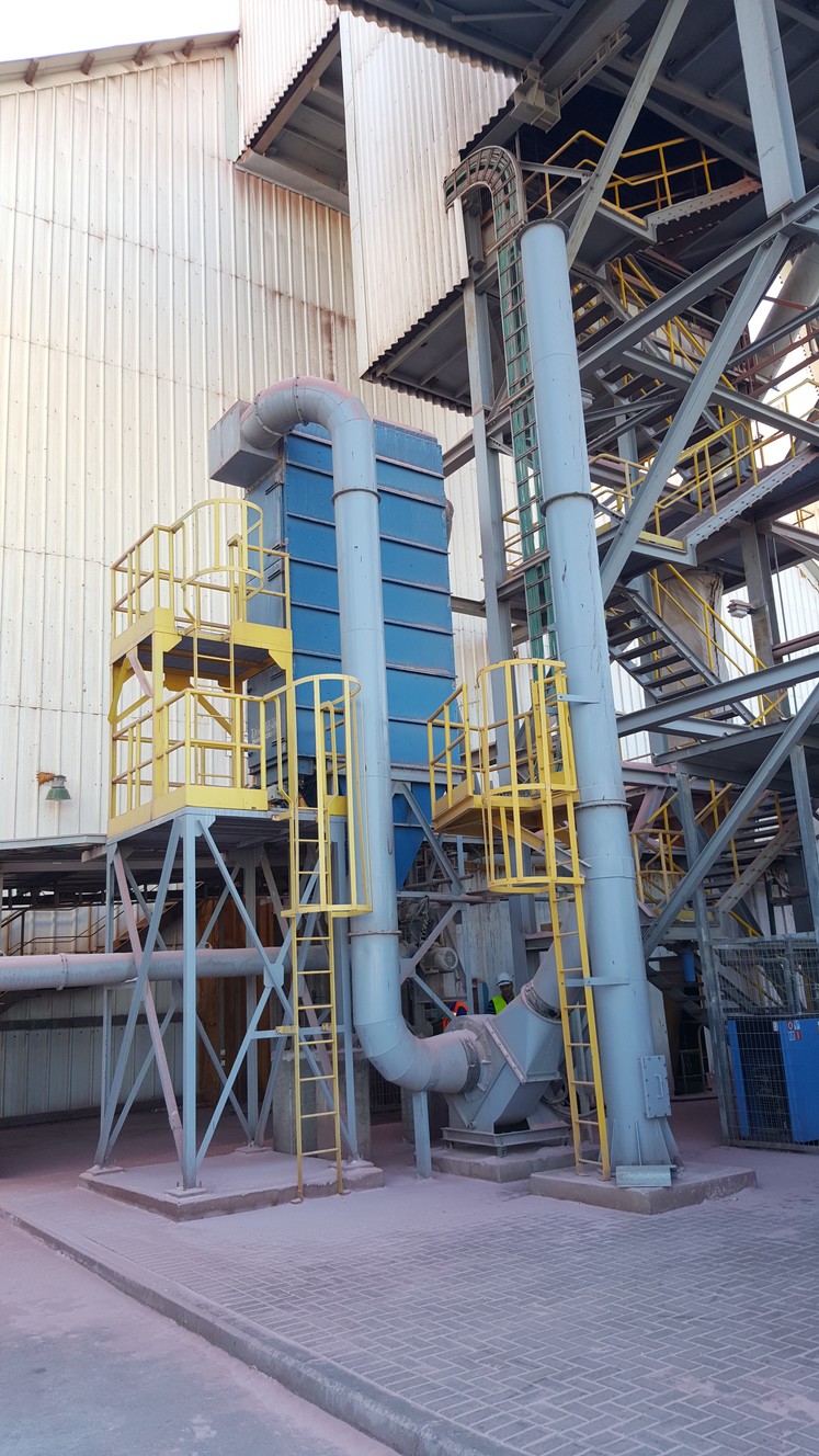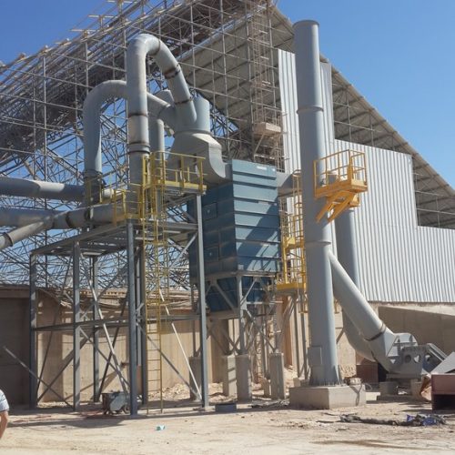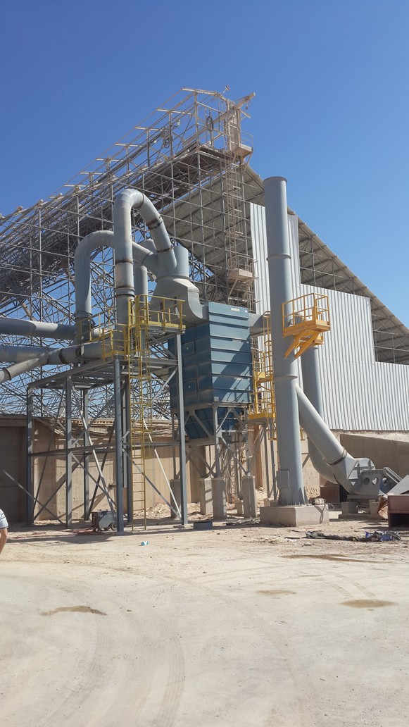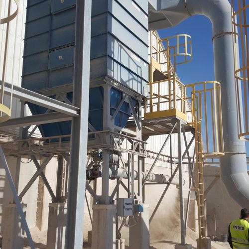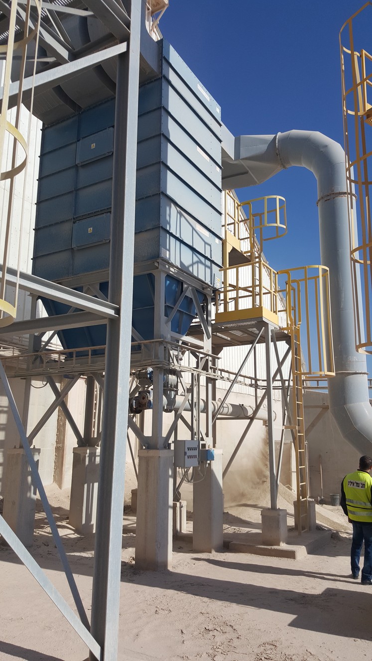 A system for treating environmental air pollution. Air pollution is caused by the transportation of chemicals in a powdery state from receiving pits to loading them onto ships. Analysis of processes and P&ID diagrams, detailed preliminary planning of pipelines and equipment placement rules were carried out. Bag filters, blowers, hoods and suction pipes and standard exhaust chimneys were designed and manufactured. Total delivery of the system in Eilat port about 150,000 m³/h